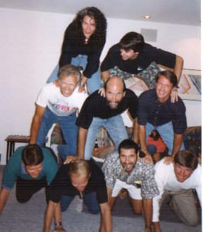 "Friends". Well maybe a little Ice Cream and cookies too!!! Some of us will be helping Rich setup that Volleyball court sooner while others will be later. Much like Saturdays at South Mission. One thing is for sure, there will always be room for everyone on Rich's net. Let's take this special time to remember our time with Rich and renew our efforts to be a better friend to everyone (much like Rich did). Let them know in this life how important they are to you. This way the games will be much better when we are invited to play on Rich's court once again. Terry Grenier: I first met Rich at an ASA event. A Polaroid Party, on the list of things we had to do was strip down to our underclothes. Rich suggested we all go back to his house, his roommate Bill would gladly take the picture. Rich was also the one willing to go into Victoria Secret and put on lingerie, he also put on a diaper and had his picture taken. He drove us around in his old blue van as we got our pictures to win the game. I remember thinking this is someone I want as a friend and from that day forward we were. Rich had a way of making everyone feel special. Tony Hannemann: I have fond memories of Rich and Brigitte swing dancing around Frank’s “dance floor” during one of his parties. They were fun to watch, not only great dancers but truly in love. Dawn Coney: One of my best memories of Rich will always be Saturday volleyball. I would always arrive just before he and Brigitte. Once they arrived we would set the lines and maybe set up the net if there were at least four people there. If not we would just set the lines and sit and chat. Rich loved to talk about sports and I remember he came with Randy and I to a Holiday Bowl game a couple of years ago. Rich was a warm hearted, loving individual. One of the kindest people I would come in contact with. His love for Brigitte was endless. Jackie Rahsaz:
